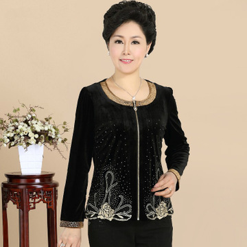 • 春秋裝大碼女裝老年媽媽裝金絲絨上衣中老年女士短款小外套開衫 /