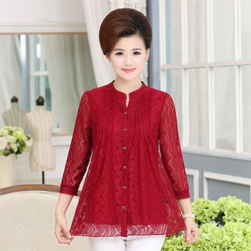 • 新款中老年女裝春秋裝襯衫中年時尚大碼媽媽裝長袖蕾絲襯衣開衫批 /