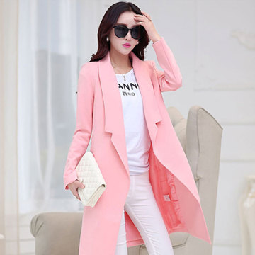 春秋季中長款風衣外套女長袖韓版修身顯瘦百搭簡約西裝褂子潮 /
