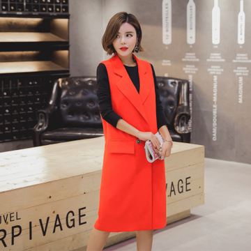 一件代發(fā) 韓版秋季橘紅色馬甲風(fēng)衣中長款寬松雙排扣女裝風(fēng)衣外套 /