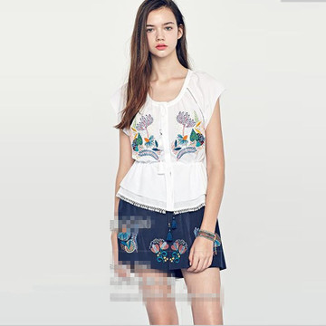 16年夏裝新款韓版刺繡流蘇收腰飛飛袖顯瘦百搭雪紡襯衫 女裝 /