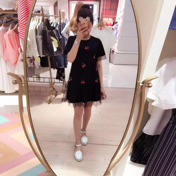 夏新款韓版時(shí)尚繡花修身珠片網(wǎng)紗圓領(lǐng)套頭純色一步連衣裙女 /