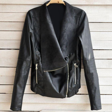 歐美新款ebay女裝歐美朋克柳釘裝飾修身外套雙翻領(lǐng)別致PU小皮衣 /