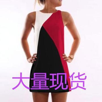 速賣通爆款wish ebay 歐美時尚撞色幾何拼接連衣裙 /