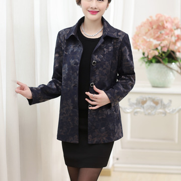 新款秋裝女士中老年經(jīng)典印花大方簡約西裝領外套 /