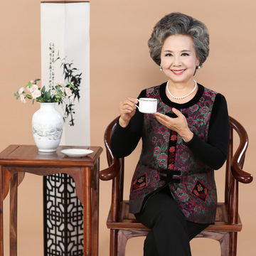 秋冬季新款老年人奶奶裝經(jīng)典印花民族風馬甲 /