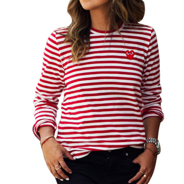 速賣通EBAY亞馬遜熱賣外星人印花條紋上衣長袖海軍風圓領T恤 /