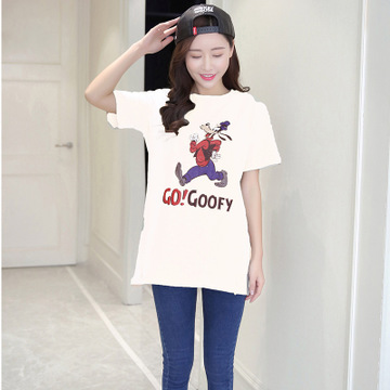 新款韓版高飛狗卡通印花T恤寬松中長款側(cè)開叉短袖t恤女純棉 /