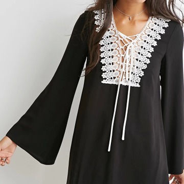 菲妹女裝新款蕾絲雪紡拼接連衣裙 寬松大碼女裝喇叭袖裙子 /