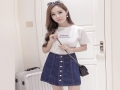 絲雨女裝新款高腰A字牛仔裙半身裙顯瘦短裙一排扣韓版夏 /