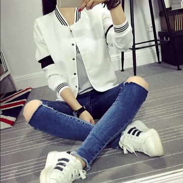 春秋裝 新款韓版寬松顯瘦 黑白拼接立領(lǐng)棒球服外套夾克上衣女 /