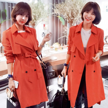 一件代發(fā)韓版新款春秋裝大碼女裝外套雙排扣中長款翻領(lǐng)風衣女 /