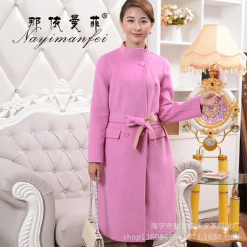 那依曼菲2015新款歐美毛呢外套直筒 高端中長款雙面羊絨大衣女 /