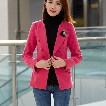 秋冬新款百搭上衣女士韓版毛呢外套西裝領(lǐng)雙排扣修身短外套潮 /