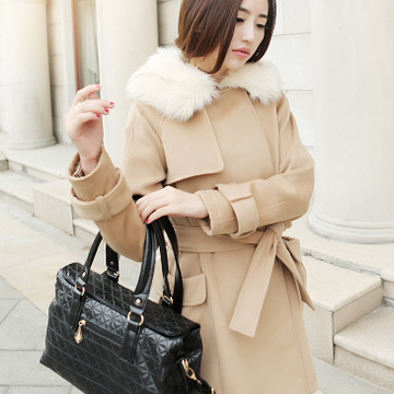 秋冬裝 韓版雙排扣中長款毛領(lǐng)加厚毛呢外套 女 呢大衣 /