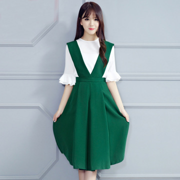 • 春裝新款女裝韓版修身連衣裙夏雪紡中長裙時(shí)尚背帶裙兩件套裝 /