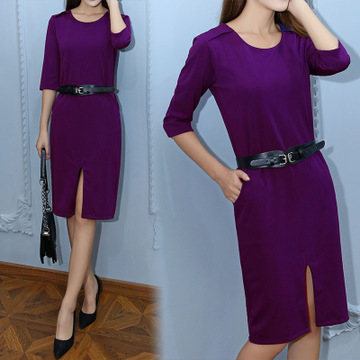 秋冬裝新款五分袖中長款修身顯瘦氣質(zhì)ol連衣裙職業(yè)女裝包臀裙 /