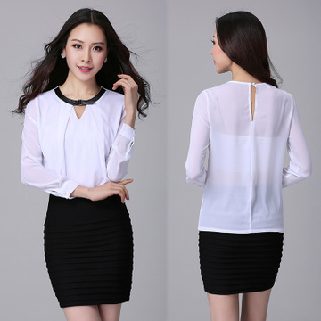 歐洲站春秋新款白襯衫女春秋襯衣女士長袖雪紡衫女 /