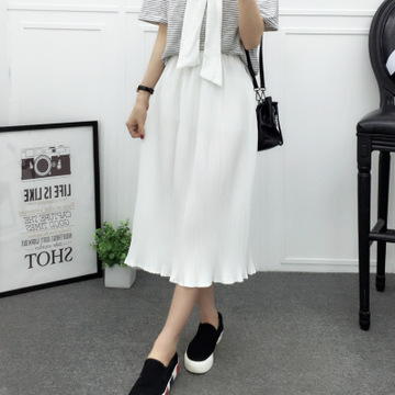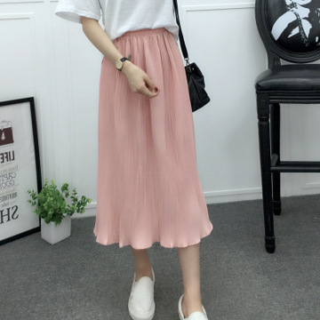 春夏韓版高腰雪紡文藝修身顯瘦學(xué)生百褶半身裙中長款裙子 /