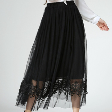 春夏新款歐美氣質(zhì)百搭網(wǎng)紗蕾絲邊仙女裙長裙半身裙 /