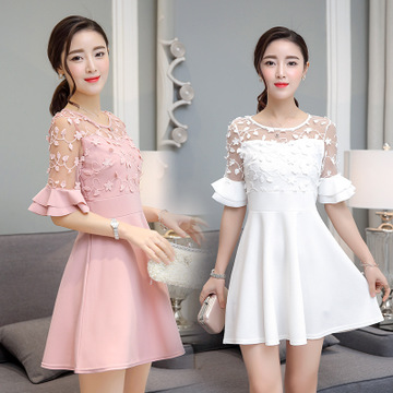 夏裝新韓版時尚氣質(zhì)修身顯瘦刺繡蕾絲連衣裙潮 /