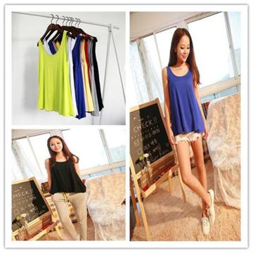 春夏季大擺短衫短款吊帶糖果色莫代爾寬松u領(lǐng)背心公主衫一件代購 /
