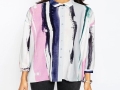 歐美大牌春夏季女裝時尚雪紡衫 彩條蝙蝠袖寬松透視襯衣襯衫 /