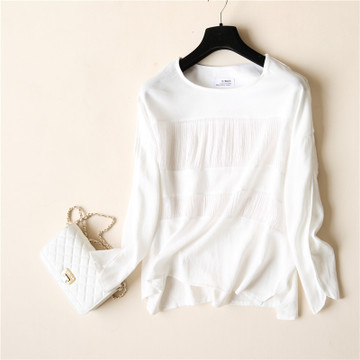 春季新款歐美圓領暗條紋上衣 爆款大牌百搭長袖T恤女 /