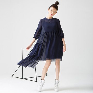 夏裝女新款韓版時尚連衣裙不規(guī)則透視燈籠袖中長裙廣州白馬貨 /