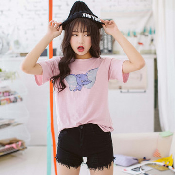 新款小象卡通印花圓領(lǐng)短袖t恤女夏季學(xué)生純棉8056 /