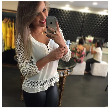 廠價直銷速賣通熱銷歐美V領(lǐng)網(wǎng)布白色花邊襯衫 /
