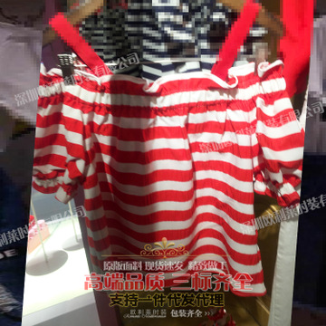 新女夏裝撞色條紋露肩式短款寬松襯衫2HL2010010-569-4A /