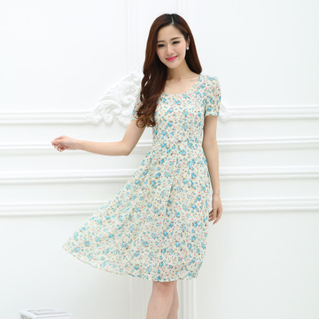 春夏新款雪紡碎花連衣裙女短袖中長(zhǎng)款修身打底裙韓版時(shí)尚顯瘦 /