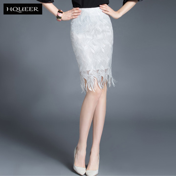 夏裝新款蕾絲半身包臀裙 修身一步流蘇中裙 大碼OL白色開叉裙 /