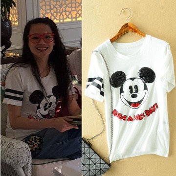 夏季舒淇同款女裝米奇印花刺繡卡通純棉上衣t恤 /