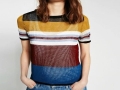 夏za*同款TRF 網(wǎng)眼鏤空針織雙面布料T恤 條紋提花圓領(lǐng)短袖上衣 /