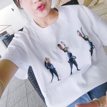 韓版寬松休閑百搭兔子印花T恤女學(xué)院風(fēng)韓國(guó)東大門夏 /