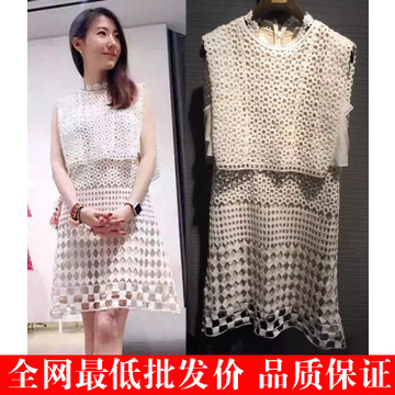 現(xiàn)貨夏裝新款韓版時(shí)尚網(wǎng)格鏤空純棉無(wú)袖圓領(lǐng)假兩件連衣裙女 /