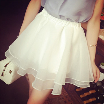 春夏高腰半身裙網(wǎng)紗甜美蓬蓬裙百搭A(yù)字仙女傘公主短裙褲 /
