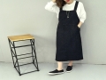 熱賣(mài) 兩粒扣肩帶寬松口袋側(cè)邊拉鏈磨破 中長(zhǎng)款直筒牛仔背帶長(zhǎng)裙 /