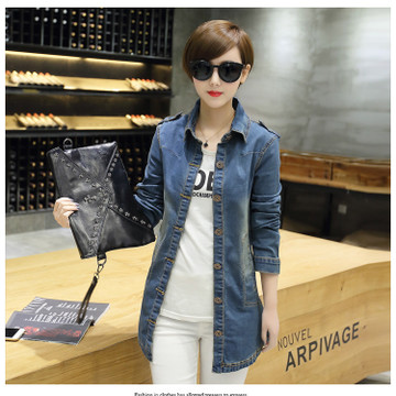 實(shí)拍春裝新款甜美女裝韓版修身中長(zhǎng)款長(zhǎng)袖牛仔外套一件起批 /