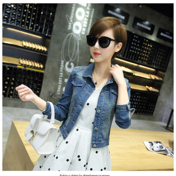 實(shí)拍春裝韓版甜美女裝新款修身顯瘦長(zhǎng)袖牛仔衣外套一件起批 /