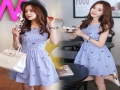 韓國(guó)代購(gòu)夏季韓版時(shí)尚小清新豎條紋鯨魚印花棉麻修身連衣裙女 /
