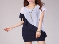 夏季新款韓版大碼女裝 假兩件修身不規(guī)則雪紡拼接拼接連衣裙 /
