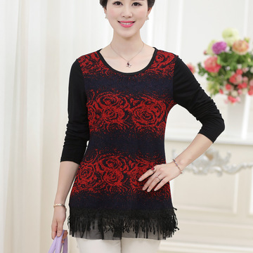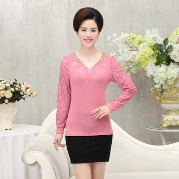 春裝新款中老年女裝針織衫V領(lǐng)長(zhǎng)袖打底衫40-50歲媽媽裝上衣 /