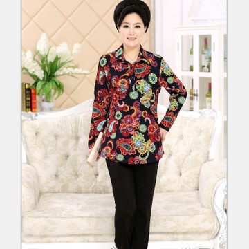 中老年女裝秋裝 長(zhǎng)袖棉氣泡棉衫加大碼寬松款媽媽裝襯衣 /