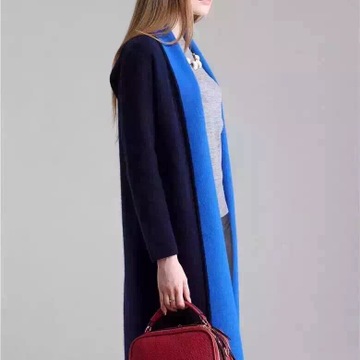 歐洲站高檔大牌秋冬新款 貂絨里外撞色翻領(lǐng)開衫 針織修身外套 /