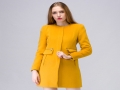 冬季新品中長款長袖羊毛外套女歐美通勤呢子大衣風(fēng)衣黃色 /