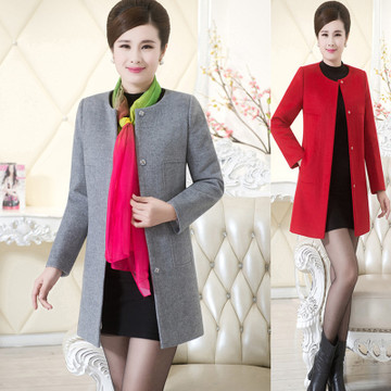 春秋大碼中老年女裝羊毛呢大衣中年媽媽裝羊絨呢子風(fēng)衣中長款外套 /