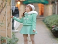 新款時尚韓版秋冬裝帶毛領(lǐng)毛呢連帽外套+短裙套裝兩件套批發(fā) /